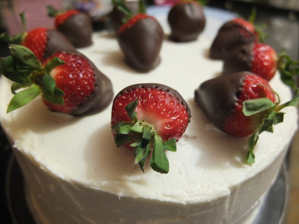 When I made the cake for the bake-off, I decorated with some chocolate covered strawberries: