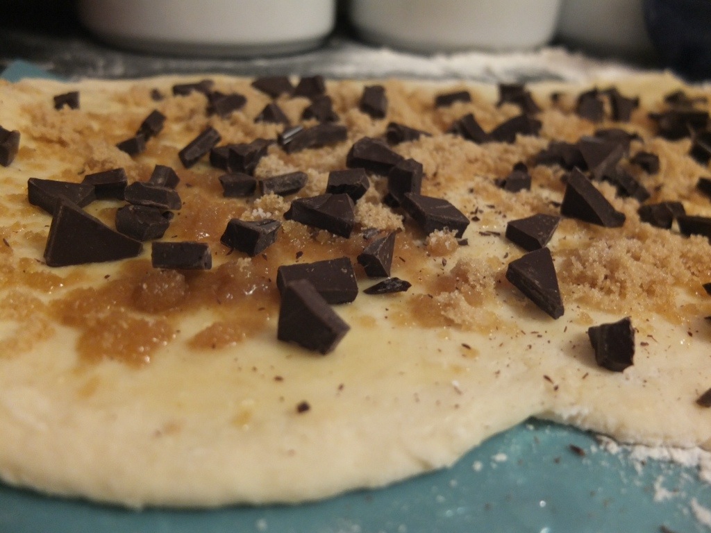 That was my genius idea. Chocolate cinnamon rolls. Just to check, I googled it. What immediately popped up? Pioneer woman cooks chocolate chip cookie sweet rolls. I’d made her regular cinnamon rolls before, and they were awesome, so I knew this recipe would be no different.