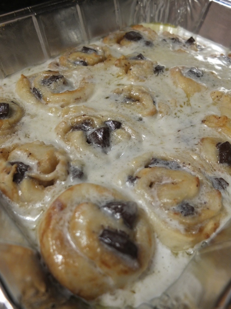 As with most things in life, when I come up with a genius idea, I then realize that someone else has already made it. I love cinnamon rolls, and I love making them. They are so good that I don’t think they should be restricted just to pre-noon hours. Why not make them for a dinner dessert? And why not add chocolate to them?