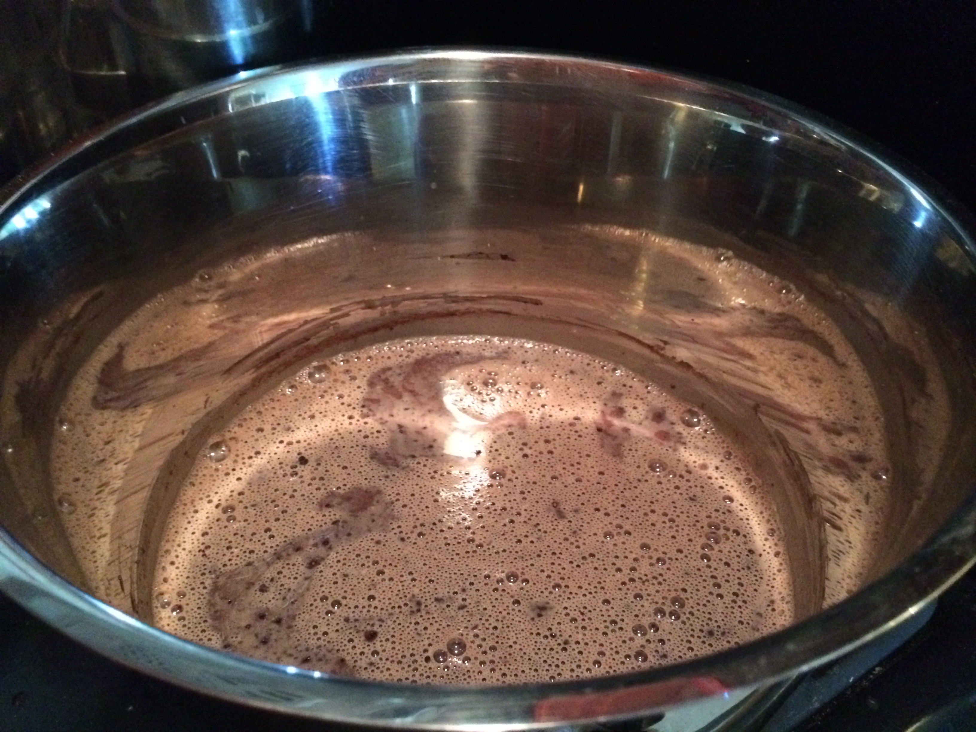 Heat up the sugar, milk, salt, and vanilla until steaming. Take off the heat and add the cocoa.