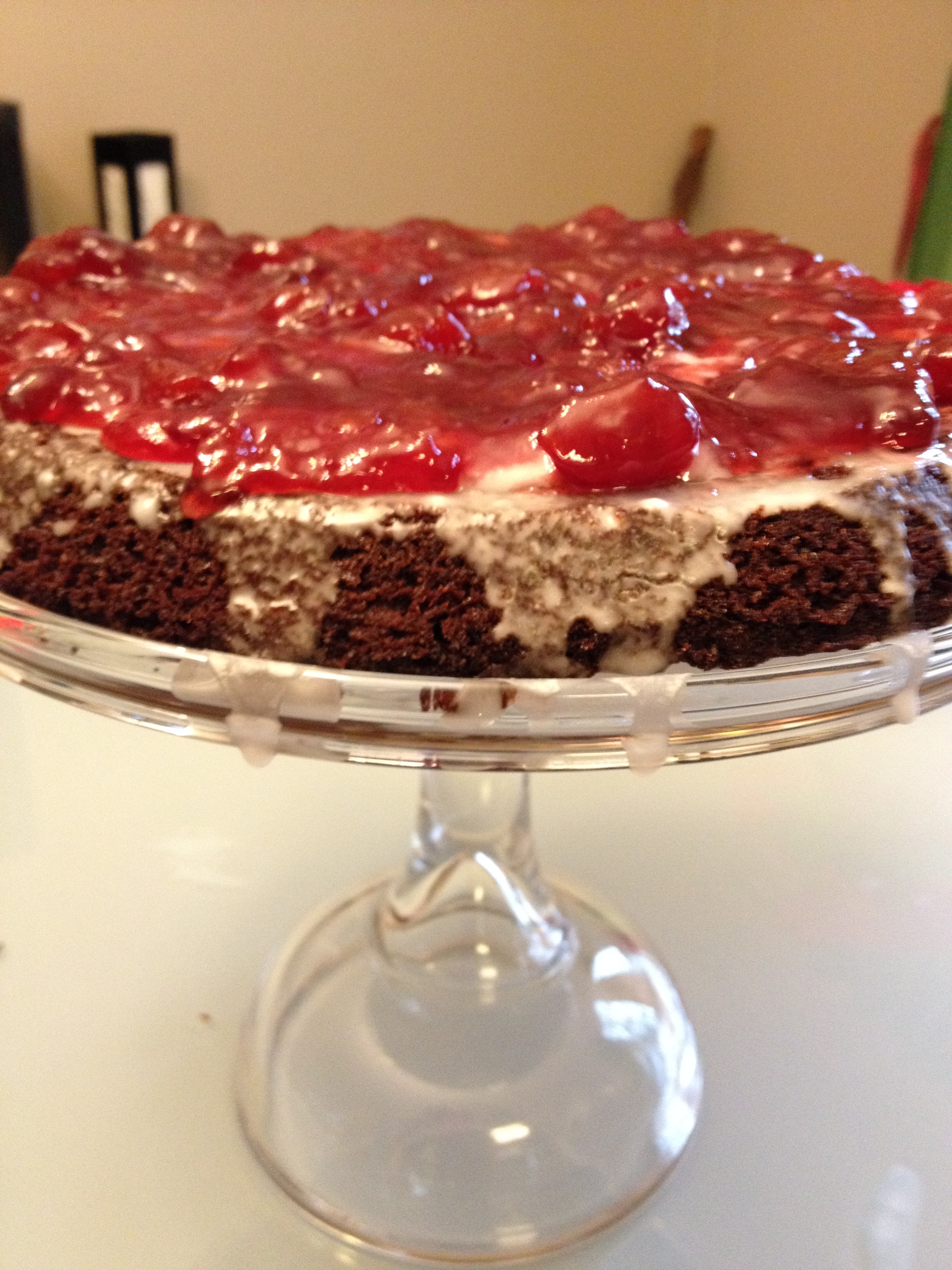 Every Christmas my mom makes triple chocolate cake for all of our family friends. It is a super rich cake with a hint of almond. Half of the recipients confuse the almond flavoring for cherry. While cherries and almonds are quite different, they go amazingly together; and I decided that I would combine them for this competition.