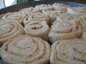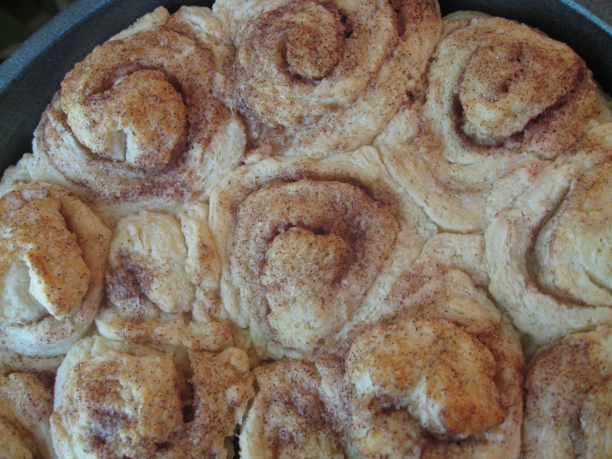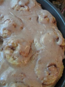 I followed the recipe from the blog.  I rolled out the dough.  Added a little butter and cinnamon sugar mixture.  Baked them.  Then added a cinnamon sugar glaze.