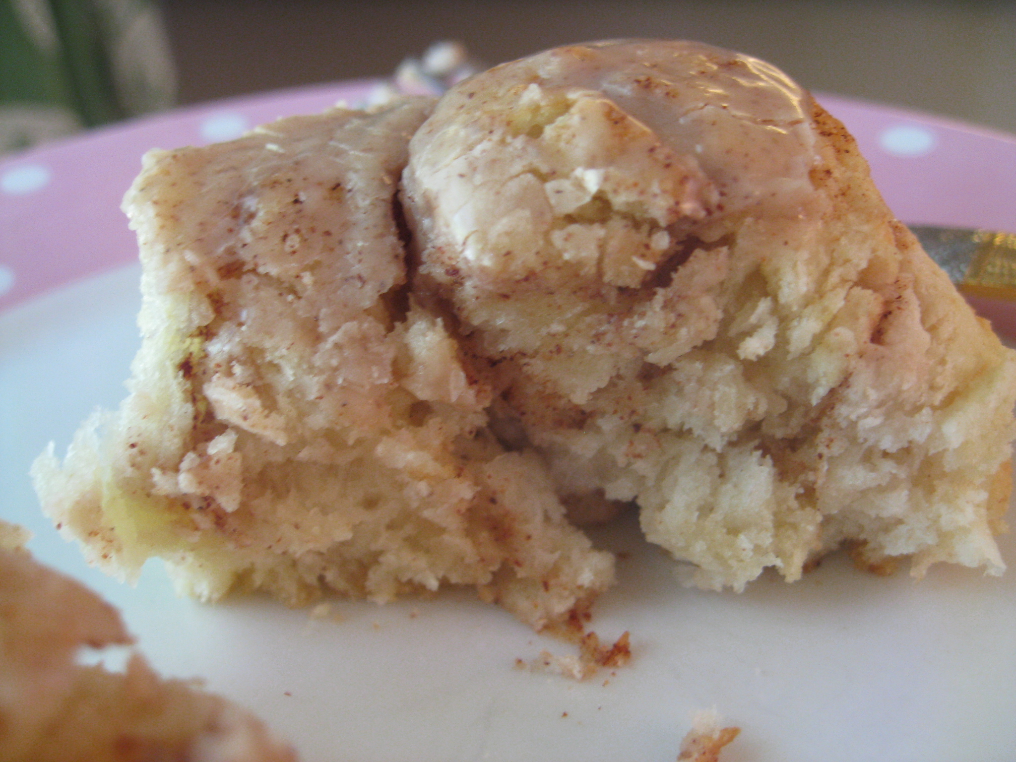 I still remember my first cinnamon biscuit.  It was from Bojangles in Winston-Salem, NC.  Amazing.  A year later, I introduced them to my dad.  He mistakenly didn’t believe that just one would be enough and ate two.  He regretted it.  Their cinnamon biscuits are so buttery and sugary that you pretty much don’t want to eat a dessert for a week.  Completely worth it, though.