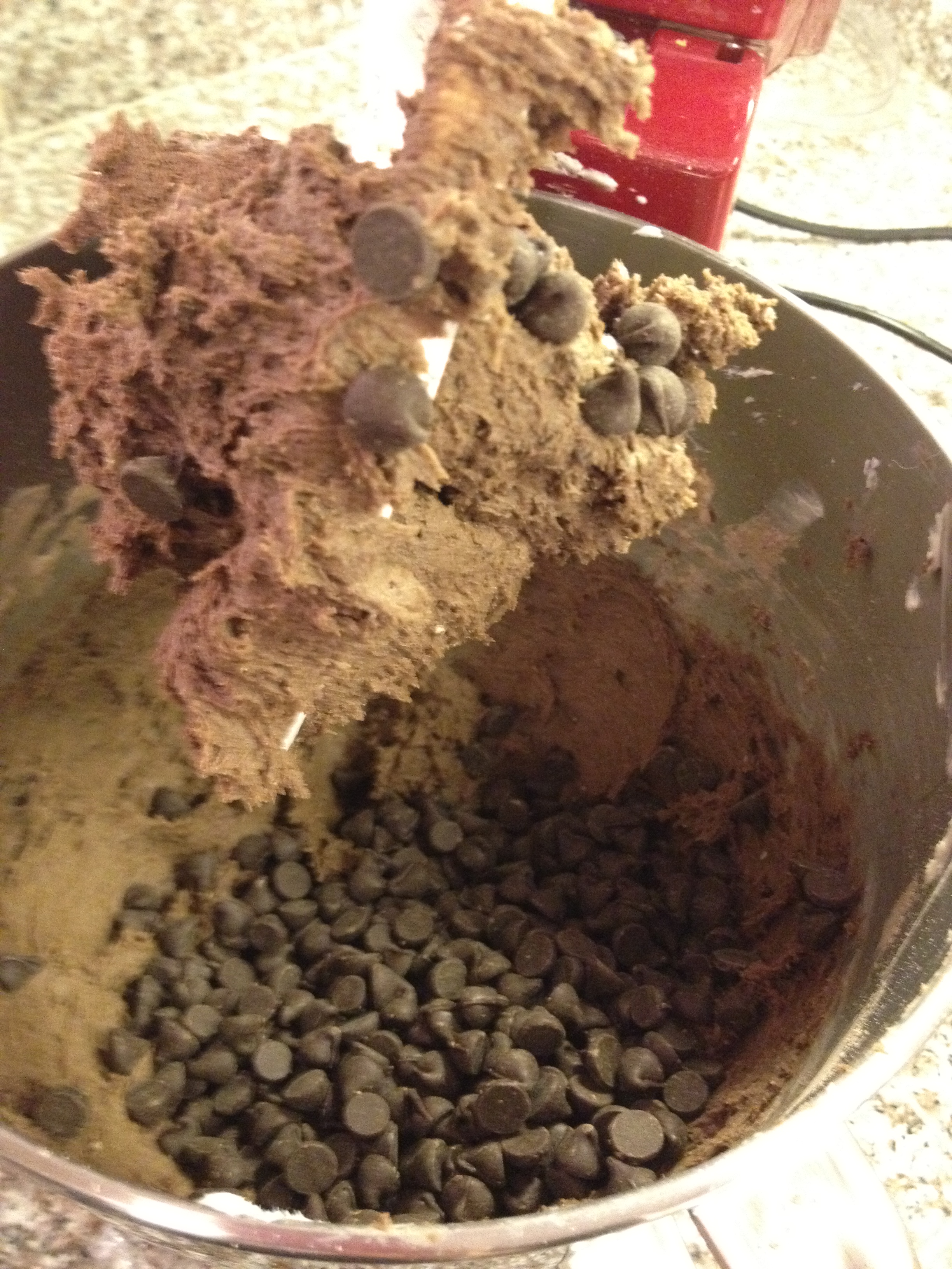 Mint chocolate chips are excellent.  I definitely tested a few before throwing them into the batter.  They add a nice twist to the chocolate cookie, and I bet would be good thrown into some brownies as well.  The mint flavor is similar to a Thin Mint, but these are incredibly soft cookies, as opposed to the crispy nature of the Girl Scout version.