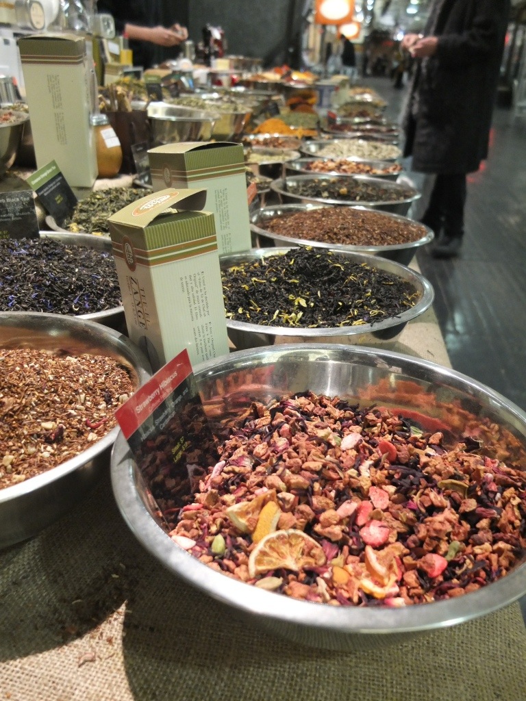 Finally, I’ll tell you about the tea/spice shop. I drink tea every day. Well, many times a day. Mainly English breakfast tea, but I’m trying to branch out. This place had any kind of tea imaginable and all made by the guy behind the table. Also, if you were looking for any time of spice combination (think: guacamole spices), they had that too. I ultimately settled on a strawberry tea that I’m going to have to break out this week.